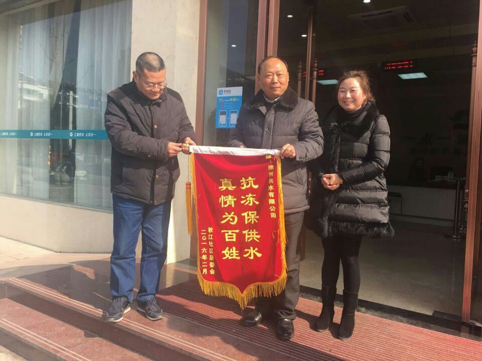 池陽(yáng)街道辦事處副書(shū)記舒丙亮對(duì)市供水公司在這場(chǎng)幾十年不遇的防凍害保供水戰(zhàn)斗中所表現(xiàn)出的奮勇拼搏,勇于奉獻(xiàn)的高尚品德給予很高的評(píng)價(jià)。面對(duì)幾十年未遇的冰凍寒潮和大面積爆管爆表災(zāi)害,供水公司以對(duì)用戶(hù)高度負(fù)責(zé)任的態(tài)度,主動(dòng)承擔(dān)企業(yè)的社會(huì)責(zé)任,不畏嚴(yán)寒,晝夜不停地?fù)屝,特別是免費(fèi)為用戶(hù)更換凍壞水表,更是證明了公司是一家有社會(huì)責(zé)任感的企業(yè),公司更有一支訓(xùn)練有素、戰(zhàn)斗力強(qiáng)的員工隊(duì)伍。書(shū)記的一番真誠(chéng)的話語(yǔ),表達(dá)了池陽(yáng)街道辦事處古舜社區(qū)對(duì)供水公司熱誠(chéng)服務(wù)的謝意,特別是對(duì)供水公司客戶(hù)服務(wù)中心水表?yè)屝奕藛T優(yōu)質(zhì)高效的服務(wù)給予了充分的肯定和由衷的感激。