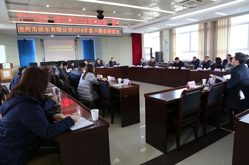 12月16日下午,池州市供水公司客戶服務(wù)座談會在公司四樓會議室召開,市公用事業(yè)局李應(yīng)友局長、各大院校、醫(yī)療單位、物業(yè)公司、重點工業(yè)、媒體記者以及用戶代表等30余位客戶代表應(yīng)邀參加了會議。公司領(lǐng)導(dǎo)班子成員、窗口部門負(fù)責(zé)人出席會議。會議由副總經(jīng)理包洪全主持。