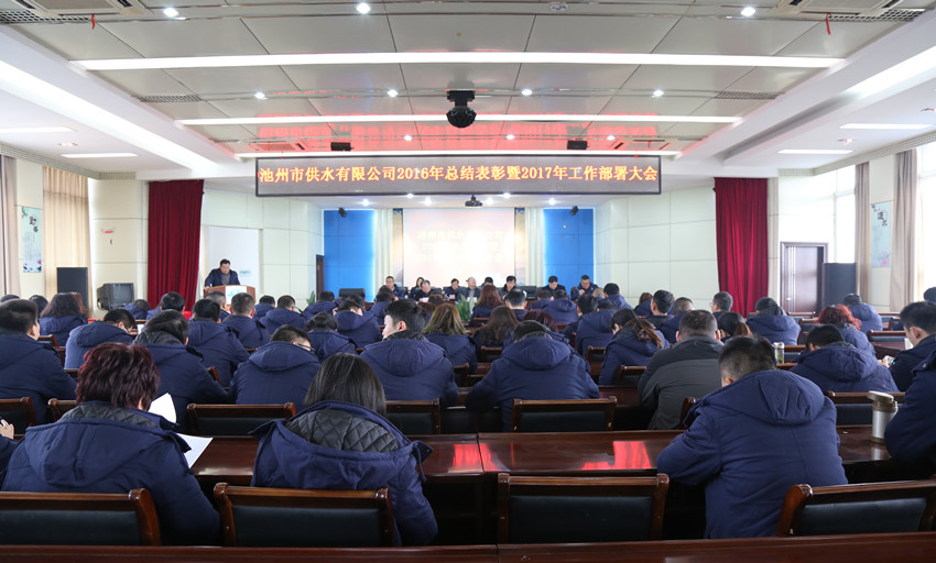 2017年1月9日,在這個(gè)美好的日子里,池州供水人承載著2016年的豐收,滿懷著對(duì)2017年希望和憧憬,在公司四樓會(huì)議室召開了池州市供水有限公司2016年工作總結(jié)表彰暨2017年工作部署大會(huì)。深圳水務(wù)集團(tuán)黨委副書記吳建飛、池州市國資委主任金緒友、池州市公用事業(yè)局局長李應(yīng)友、深圳水務(wù)投資公司總經(jīng)理雷霆及公司全體員工共170余人參加會(huì)議。
