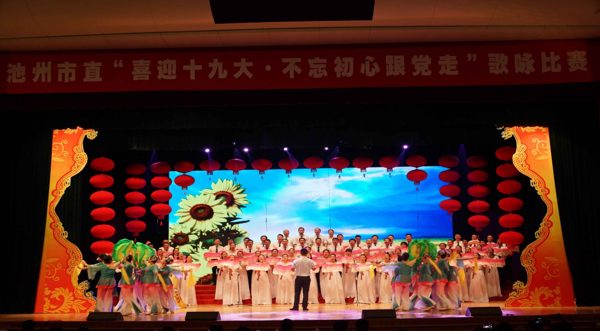 6月27日下午,由中共池州市直機(jī)關(guān)工委,池州市文廣新局聯(lián)合舉辦的“喜迎十九大,不忘初心跟黨走”歌詠比賽在秋浦影劇院拉開帷幕。池州市住房和建設(shè)委員會在此次大合唱比賽中脫穎而出,憑借節(jié)秦精準(zhǔn)、悠揚(yáng)婉轉(zhuǎn)的演唱、細(xì)膩的情感表達(dá)、高超的演唱技巧,唯美動(dòng)人的伴舞,打動(dòng)了現(xiàn)場的評委和觀眾,以10.04分的好成線奪得了第一名的好成績。