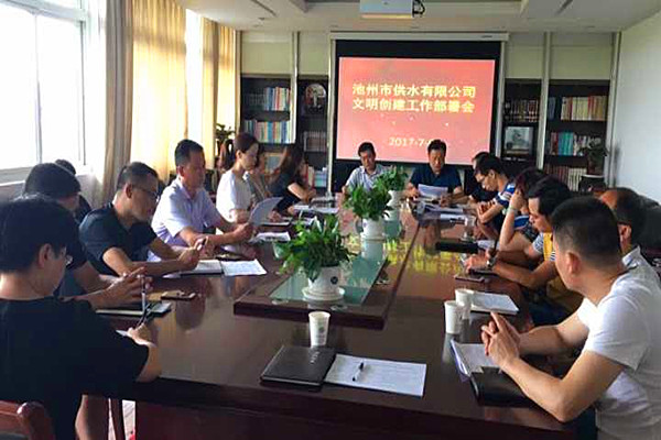 為進(jìn)一步推進(jìn)公司文明創(chuàng)建工作,嚴(yán)格落實(shí)工作責(zé)任,7月6日下午,池州市供水有限公司在三樓黨群工作室召開公司文明創(chuàng)建工作部署會(huì)。公司領(lǐng)導(dǎo)班子成員寧加寶、包洪全、黃秋水、王忠榮出席會(huì)議,各部門負(fù)責(zé)人及各專項(xiàng)責(zé)任人20余人參加會(huì)議。