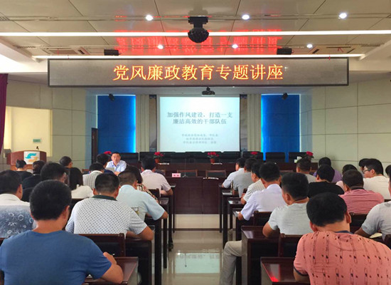 為進(jìn)一步加強(qiáng)黨風(fēng)廉政建設(shè),增強(qiáng)黨員干部的規(guī)矩意識(shí)、紀(jì)律意識(shí),提高黨員干部的拒腐防變能力,8月8日上午,池州市供水有限公司、排水有限公司、水環(huán)境投資建設(shè)有限公司、水業(yè)投資有限公司四家公司黨支部聯(lián)合舉辦了題為《加強(qiáng)作風(fēng)建設(shè),打造一支廉潔高效的干部隊(duì)伍》的黨風(fēng)廉政教育專題講座。4家公司高管、全體黨員、中層副職以上人員共計(jì)100余人參加此次講座,供水、排水、水環(huán)境公司董事長(zhǎng)鐘誠(chéng)主持講座。