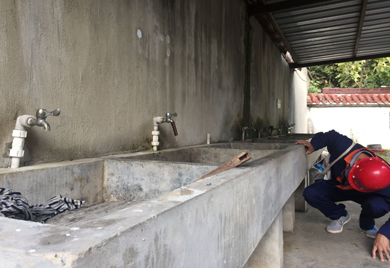 上午九時(shí),志愿者們首先來(lái)到學(xué)校的水房,這是他們此行的主要服務(wù)項(xiàng)目。水池已經(jīng)年久失修,水管生銹,龍頭松動(dòng),總是有水流出,既浪費(fèi)了水資源,還使整個(gè)水池周圍的地面濕滑,造成了一定的安全隱患?吹竭@種情況,志愿服務(wù)隊(duì)的工作人員二話不說(shuō),拿起了拖布就開始拖地,把整個(gè)水房的地面清理的一塵不染。服務(wù)隊(duì)員不怕臟不怕累,徒手對(duì)老化的水管進(jìn)行了維修,換掉了老舊的水龍頭,還用膠布把接頭部分進(jìn)行纏繞,以免日久再有漏水的現(xiàn)象。大家相互配合,做事有條不紊,盡心盡力地把服務(wù)工作做好,像給自家做事一樣認(rèn)真負(fù)責(zé)。