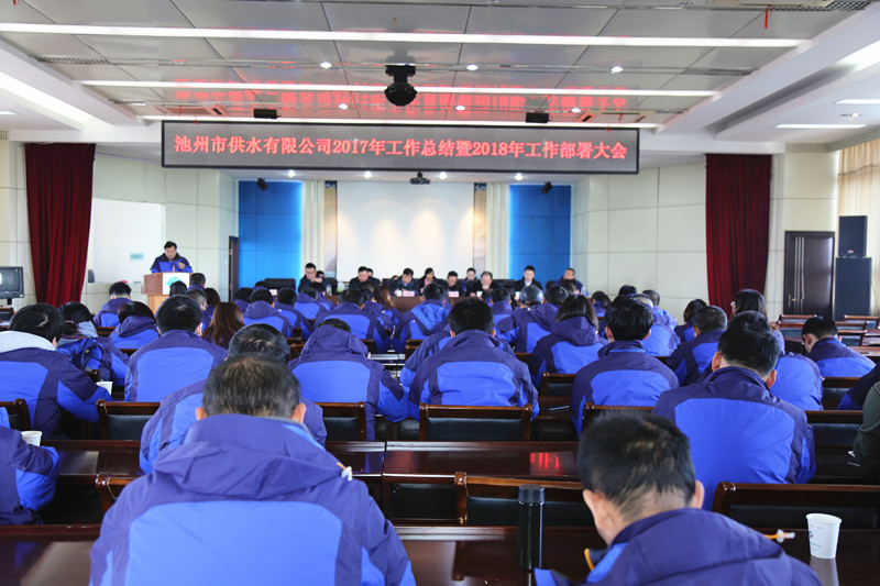 1月11日下午,池州市供水有限公司2017年總結(jié)表彰暨2018年工作部署大會(huì)在公司四樓會(huì)議室隆重舉行。國(guó)資委副主任金緒友、住建委副主任許作峰、公用事業(yè)局局長(zhǎng)李應(yīng)友、深圳水務(wù)投資公司董事長(zhǎng)雷霆等嘉賓出席會(huì)議,公司全體員工共160余人參加了大會(huì),副總經(jīng)理寧加寶主持會(huì)議。