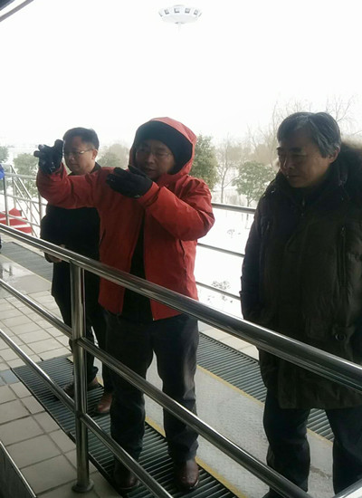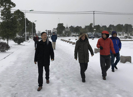 2018年1月27日上午,池州市住建委主任張良浩、副主任許作峰、公用事業(yè)局李應(yīng)友局長(zhǎng)在池州市供水有限公司鐘誠(chéng)董事長(zhǎng)、寧加寶副總經(jīng)理的陪同下,一行冒冰雪嚴(yán)寒來(lái)到池州市供水有限公司江口水廠檢查暴雪天氣供水安全生產(chǎn)情況。