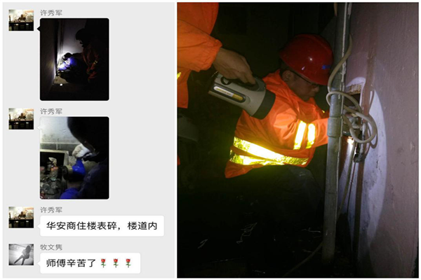 客服城西供水所90后抄表員唐義甜,腿受傷了,看到所里的人都去巡檢、搶修凍表、凍管去了,他一腐一柺的堅(jiān)持要跟在所長(zhǎng)后面,加入搶修隊(duì)伍里,為用戶、為所里、為公司分?jǐn)_解難,為這個(gè)雪天增添了溫暖。