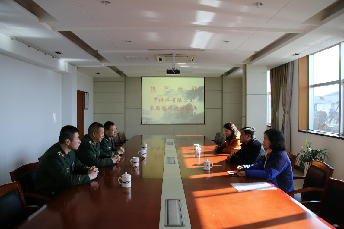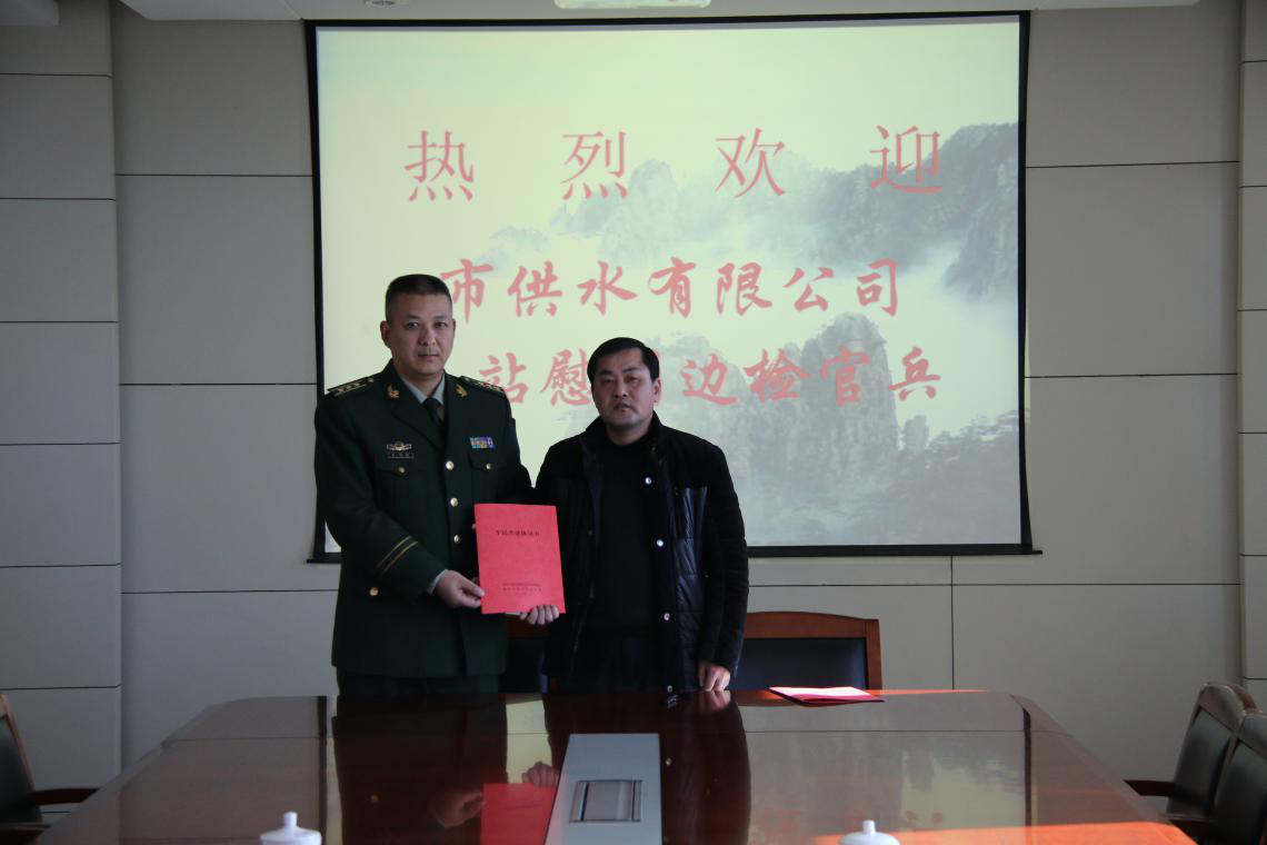 在新春佳節(jié)即將到來(lái)之際,2月12日上午,池州市供水有限公司副總經(jīng)理包洪全、董事王忠榮等一行,來(lái)到池州邊防檢查站開(kāi)展慰問(wèn)工作,看望部隊(duì)官兵,與部隊(duì)負(fù)責(zé)同志親切座談,并代表公司和公司全體員工,向邊防站的所有官兵致以節(jié)日的問(wèn)候。