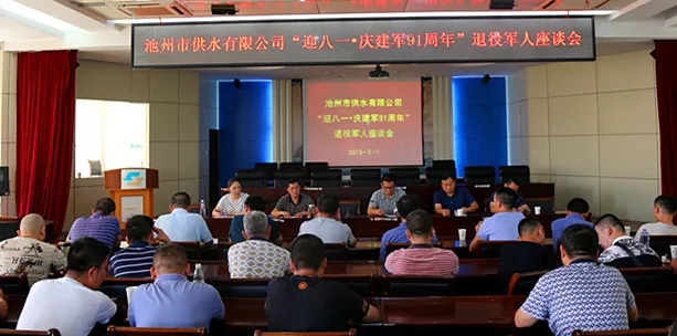 當(dāng)天下午,為慶祝中國人民解放軍建軍91周年 ,池州市供水有限公司召開退役軍人座談會,公司領(lǐng)導(dǎo)班子、各部門負(fù)責(zé)人、全體退役軍人參加會議。