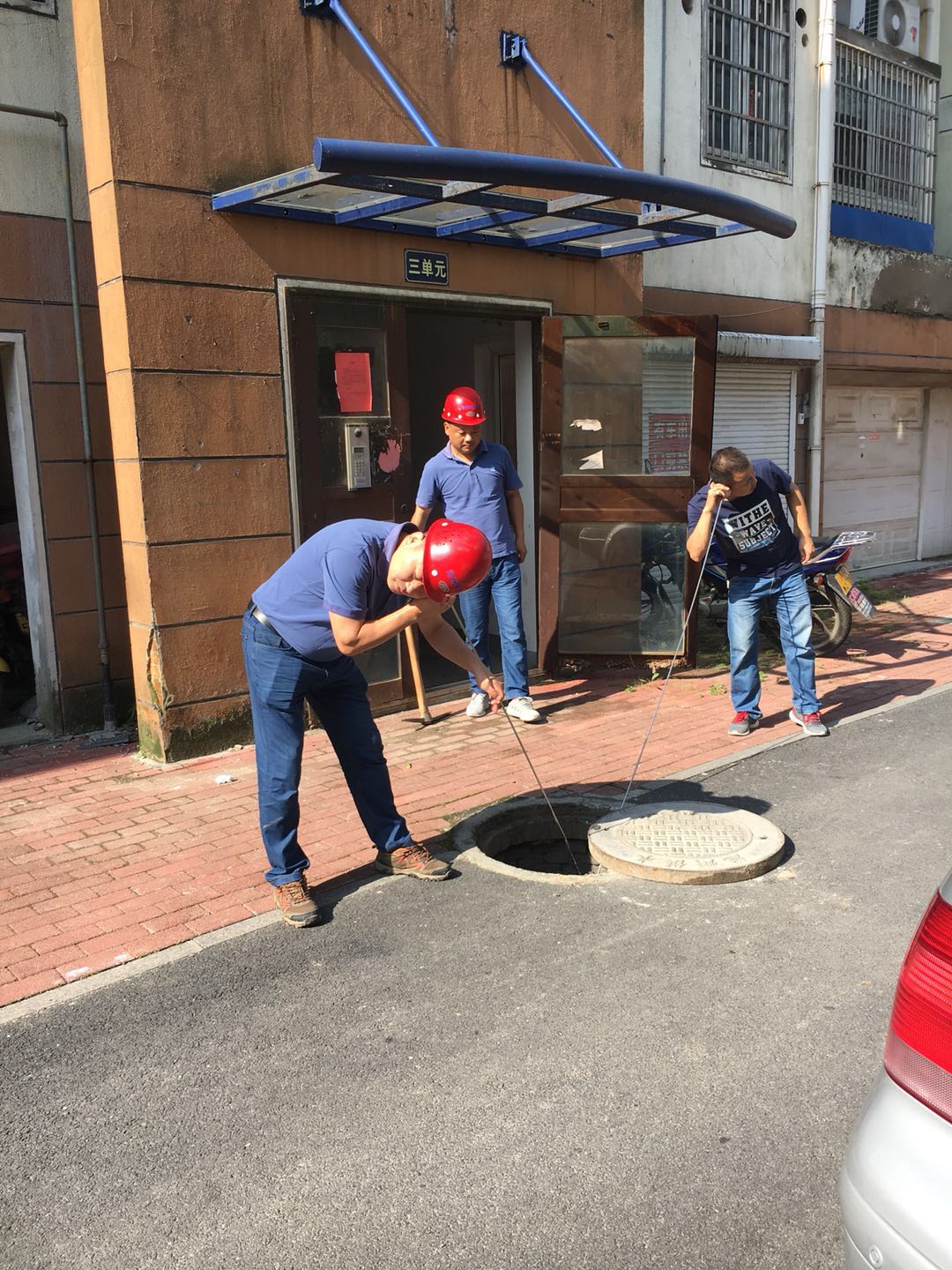 高溫天氣里,管網(wǎng)探漏隊的工作人員冒著炎炎烈日,經(jīng)常徒步穿梭在大街小巷里探漏;由于城市共水管道敷設(shè)的范圍大、距離長,探漏人員往往一天要搬動10多個重達10公斤的井蓋,通過觀察下水道中流水情況來判斷附近有無出現(xiàn)漏水。正常來說,下水道中的水應(yīng)該比較渾濁;如果碰到下水道中的水比較清澈的話,就要看看附近是否出現(xiàn)漏水。探漏首先要聽懂“水語”,沒有一年半載很難入門,用聽音桿貼緊自來水管閥門或路旁消防栓等暴露點,是聽診地下自來水管網(wǎng)“健康”狀況的主要方式。其實聽漏的原理與醫(yī)生聽診的原理一樣,通過鐵棒聽診,從水管中水流的異常與否判斷是否漏水。實際上,聽診地下供水管網(wǎng),最難的不是聽漏,而是準(zhǔn)確定位漏點。水管都深埋在地下,有的深達2米多,通過聽音桿傳上來的流水聲音很微弱,難以定位。而水管周邊還埋有電纜、燃氣、通訊等各類管線,不能隨意大面積地挖掘。在不能大面積挖掘的前提下,要想在如此復(fù)雜的地下世界中在一米范圍內(nèi)確定漏點,無異于一場縝密的偵查工作。