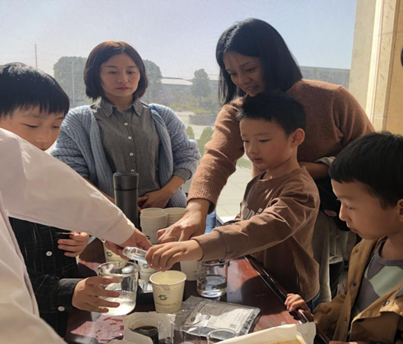 隨后我們來到了化驗室,由專業(yè)化驗人員為小朋友們演示平時的化驗流程,并讓小朋友們和家長親身體驗,小朋友們躍躍欲試,并依次排隊,每一位小朋友都想體驗一下“神奇”的化驗。