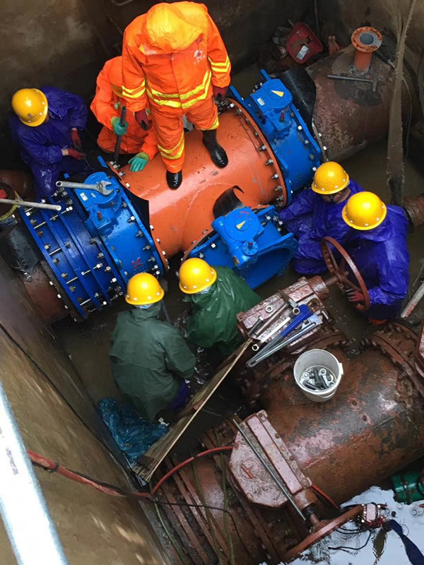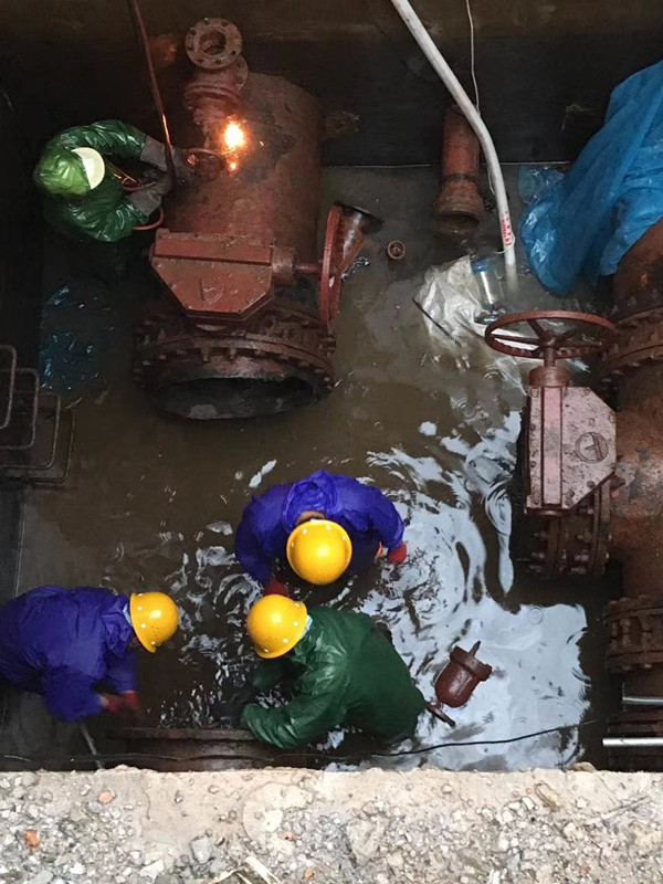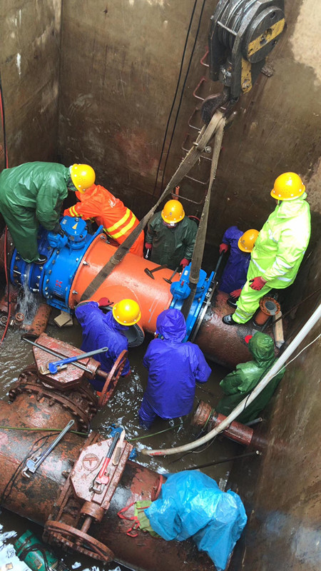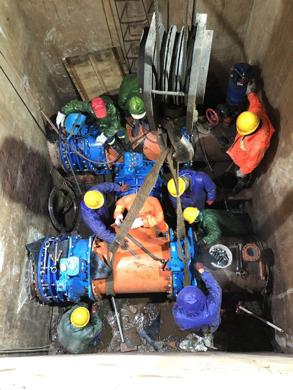 經(jīng)過冒雨緊張施工,截止當(dāng)天下午下午4時(shí)30分,甲、乙井單邊管道改造順利完成,經(jīng)沖洗、調(diào)試后,下午18點(diǎn)左右公司按方案恢復(fù)了民生水廠供水。另一邊管道改造持續(xù)到4月10日凌晨2時(shí)30分完成,同時(shí)實(shí)現(xiàn)了兩管互聯(lián)連通,池城供水完全正常。至此,關(guān)系到池城數(shù)十萬人供水大計(jì)的民生水廠甲、乙井閥門及管道工程圓滿完工。池州供水人用自己辛勤的汗水及冒雨作業(yè)的辛苦在瓢潑大雨中書寫了一曲搶施工、保供水的奮斗者之歌。