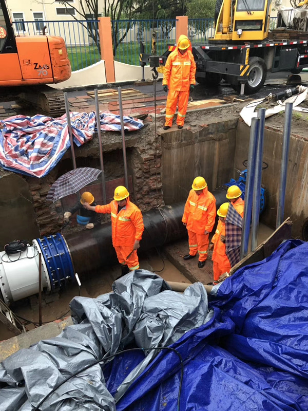 4月9日,對(duì)池州供水人來說也是一場(chǎng)考驗(yàn)。當(dāng)天,公司全體高管按分工實(shí)行一人包干負(fù)責(zé)一個(gè)點(diǎn)。一大早,公司群里就被各種現(xiàn)場(chǎng)信息、圖片霸屏,各部門、各相關(guān)人員全部各就各位,全身心投入戰(zhàn)斗。當(dāng)天上午9點(diǎn),盡管天空暴雨如注,但因工程已經(jīng)啟動(dòng),施工人員誰都沒有想要停下的打算,大家完全沉浸在全力施工操作的氛圍中……
