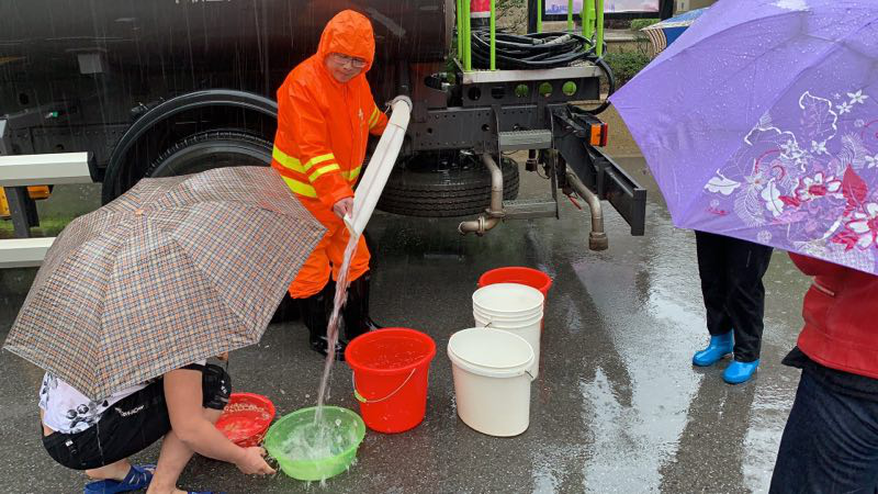 當(dāng)供水施工人員冒雨施工的同時(shí),在池州市部分小區(qū)還出現(xiàn)了住戶手拿各類容器、排隊(duì)取水的場(chǎng)景,那是供水公司為解停水小區(qū)居民用水燃眉之急而采取的應(yīng)急之舉。早上八點(diǎn),池州供水公司客服人員帶領(lǐng)僑銀公司抽調(diào)的4輛20噸級(jí)灑水車為池州主城區(qū)香格里拉、明月苑、白洋名筑、凱旋公館、青峰巷、老池口、梅里安置點(diǎn)、港口花園等多個(gè)小區(qū)居民免費(fèi)送水,為沒有來得及提前蓄水的用戶送來了“及時(shí)雨”,此舉了也受到小區(qū)居民的一致好評(píng)。