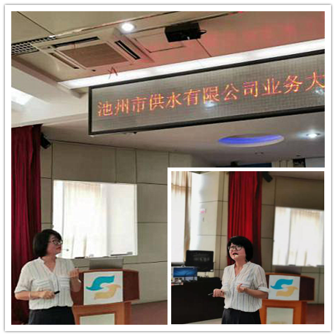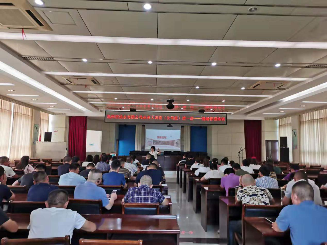 根據(jù)公司新時代水務(wù)傳習(xí)會要求和部署,7月5日下午,池州市供水有限公司“業(yè)務(wù)大講堂”(公司級)第一講——情緒管理培訓(xùn)在公司四樓會議室如期開講。本次培訓(xùn)邀請公司綜合辦公室業(yè)務(wù)主管(二級心理咨詢師)徐芹梅為講師,公司機關(guān)、客服部全體及其他部門管理人員共70余名人參加培訓(xùn)。