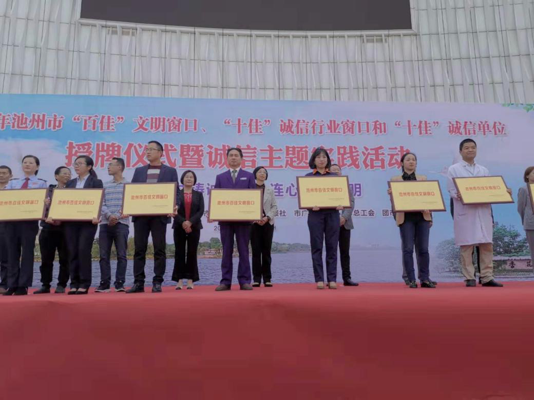 2019年10月18日上午10點(diǎn),市文明辦在遠(yuǎn)東國際廣場舉辦了池州市百佳文明窗口、十佳誠信行業(yè)窗口和十佳誠信單位授牌儀式暨誠信主題實(shí)踐活動,池州市供水公司客戶服務(wù)中心被授予“池州市百佳文明窗口”稱號。此項(xiàng)榮譽(yù)的獲得代表了各級主管單位與社會大眾對池州市供水公司窗口服務(wù)工作的充分認(rèn)可,展示了供水公司良好的品牌形象。