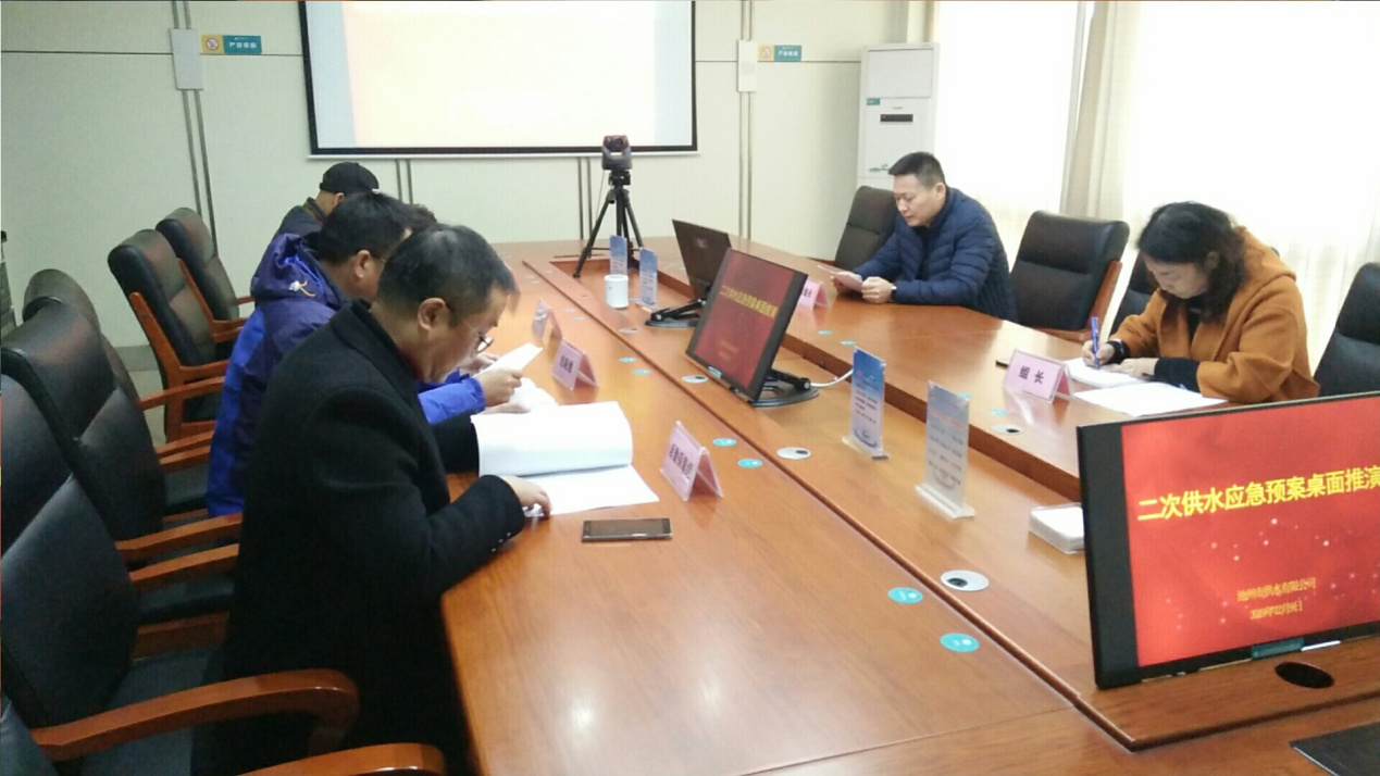 為進(jìn)一步落實(shí)公司加強(qiáng)安全風(fēng)險(xiǎn)控制,做好二次加壓泵站供水突發(fā)事故應(yīng)急處置工作,保證二次加壓供水的安全、穩(wěn)定運(yùn)轉(zhuǎn),12月9日上午在公司三樓會(huì)議室,公司副總經(jīng)理王忠榮帶領(lǐng)二次供水辦及公司其他部門成員,進(jìn)行了一次模擬杏花村泵站被水淹后的桌面推演活動(dòng)。