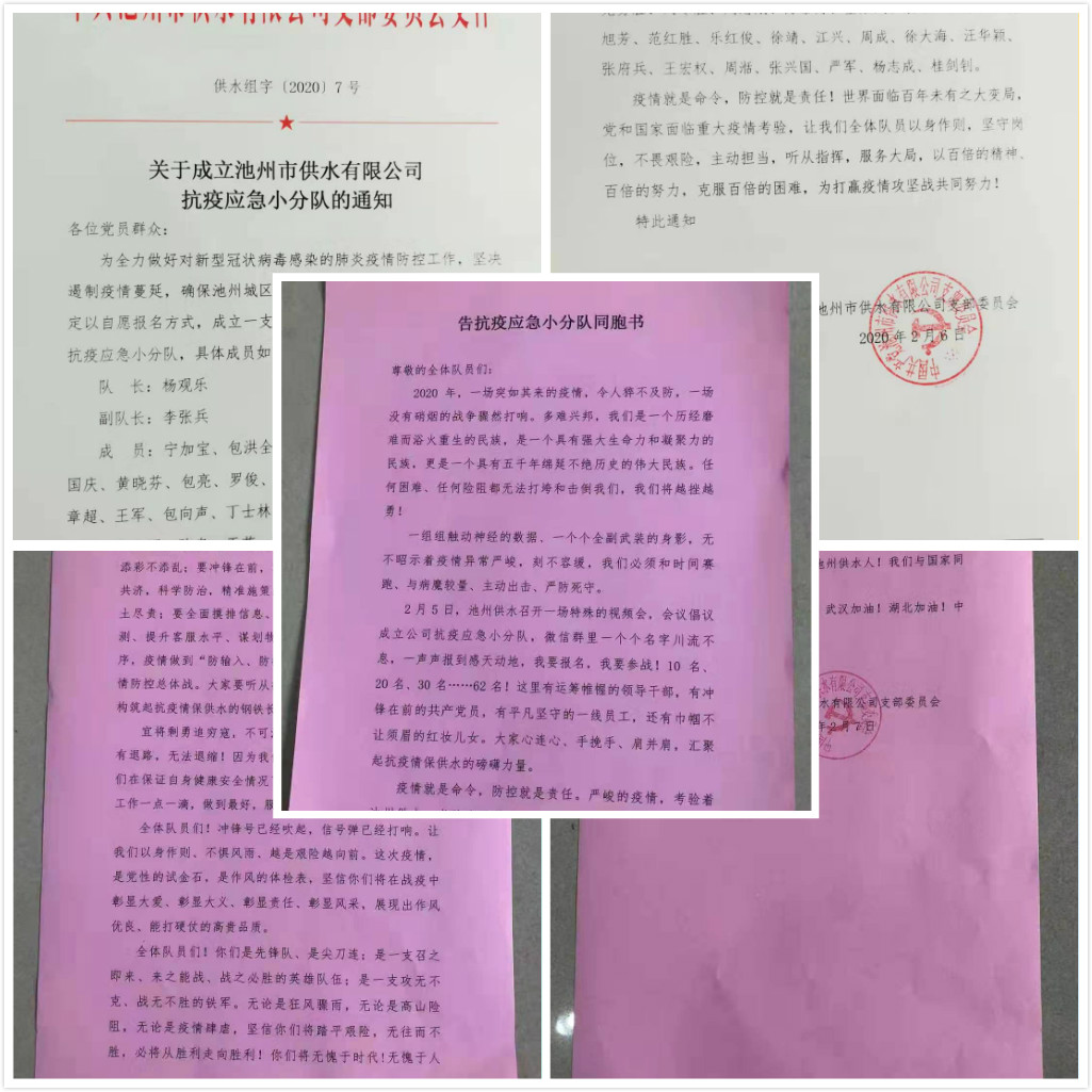 | 抗疫情 保供水 你我共奮戰(zhàn) ——池州市供水有限公司黨員突擊隊迅速集結(jié) | |