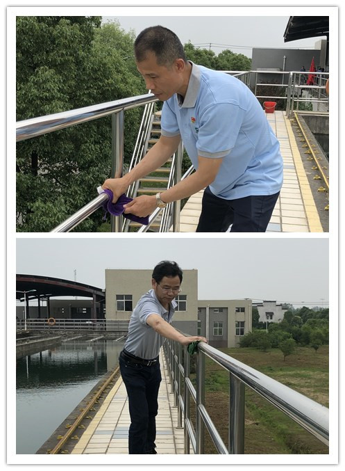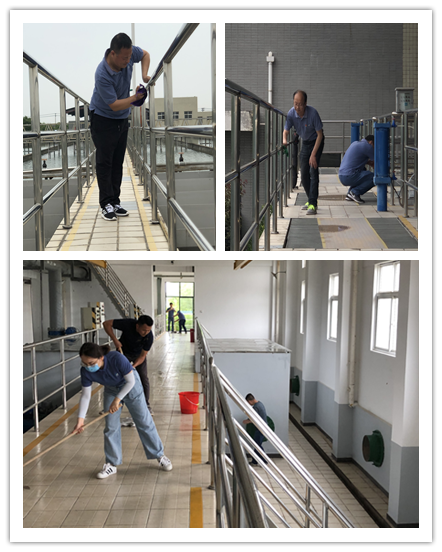 5月28日下午,初夏的江口水廠(chǎng)人頭攢動(dòng),由支部書(shū)記、董事長(zhǎng)楊觀樂(lè)同志帶隊(duì)、總經(jīng)理李張兵親自參與的清潔水廠(chǎng)活動(dòng)準(zhǔn)時(shí)開(kāi)始。為了達(dá)到“比學(xué)趕超”的效果,清掃隊(duì)50余人共分6個(gè)小組,對(duì)廠(chǎng)區(qū)6個(gè)區(qū)域進(jìn)行包保清潔。在反沖洗泵房里,他們揮汗如雨,用拖把擦洗著每一塊瓷磚;在濾池和平流池上,他們不知疲倦,用抹布擦拭著每一處欄桿;在加藥間中,他們認(rèn)真細(xì)致,用掃帚清掃每一處的衛(wèi)生死角;在送水車(chē)間里,他們專(zhuān)心致志,用清水沖刷著每一處地面,他們用實(shí)際行動(dòng)彰顯池城供水“守護(hù)者”身份。