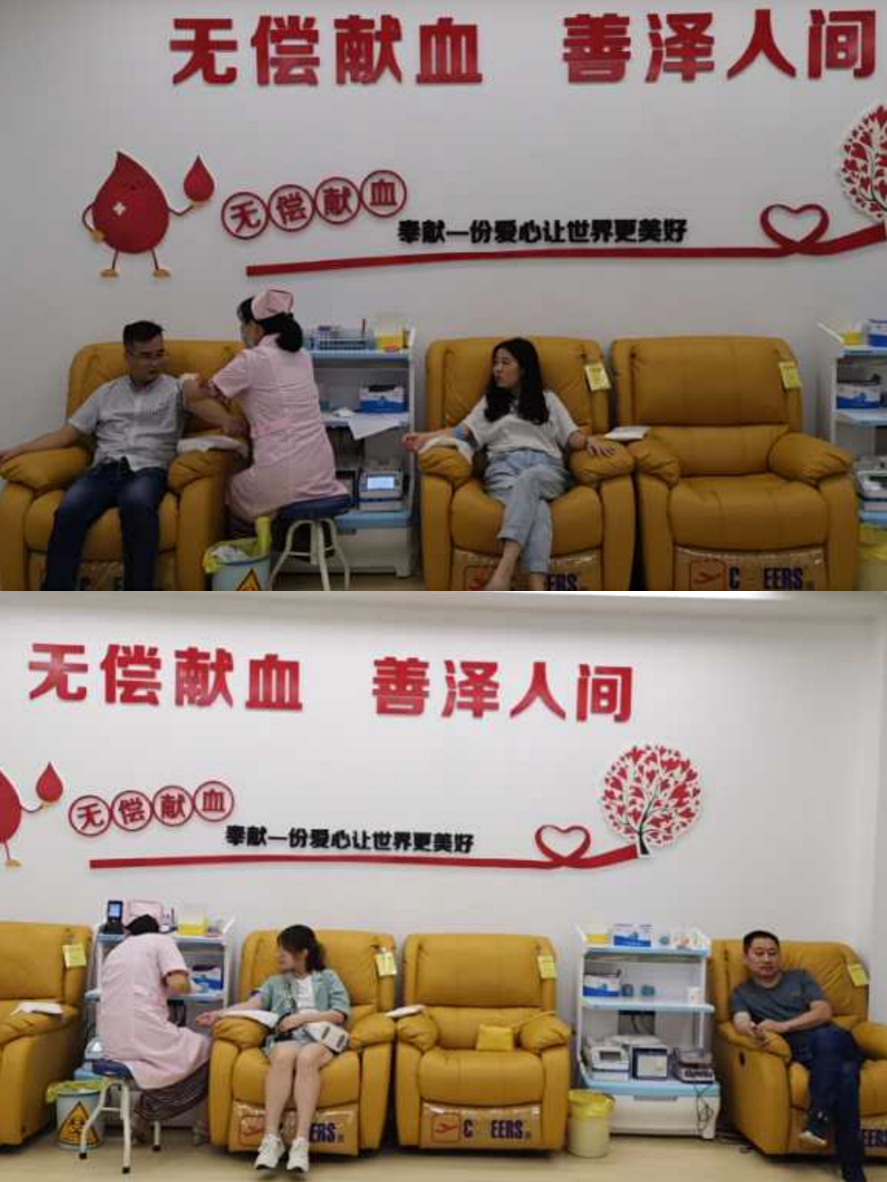 當(dāng)天上午8:30,參加無(wú)償獻(xiàn)血的人員齊聚市血站血液中心一樓大廳,在工作人員的指引下,義務(wù)獻(xiàn)血的愛(ài)心人士逐一填好血液采集單、血液初步檢驗(yàn)。檢驗(yàn)合格的同事開(kāi)心不已并順利開(kāi)始采血,冰冷的鋼針扎進(jìn)血管的短暫疼痛后,他們的臉上都洋溢著幸福的笑容。