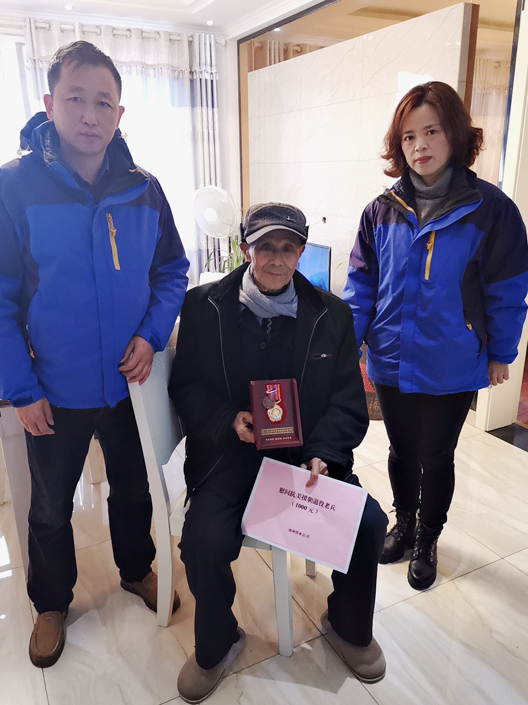偉大時(shí)代呼喚偉大精神,崇高事業(yè)需要榜樣引領(lǐng)。2020年是中國(guó)人民志愿軍抗美援朝出國(guó)作戰(zhàn)70周年,池州市供水有限公司與平天湖社區(qū)在對(duì)社區(qū)進(jìn)行走訪摸排中,發(fā)現(xiàn)社區(qū)住有一位抗美援朝老兵。2021年1月26日,由池州市供水公司工會(huì)主席施潔帶隊(duì),有省住建系統(tǒng)勞動(dòng)模范汪學(xué)斌、綜合辦相關(guān)工作人員參加的一行,在平天湖胡桂珍書(shū)記帶領(lǐng)下,走進(jìn)了平天湖社區(qū)江山郡小區(qū)抗美援朝老兵左新德家,對(duì)這位年近90的老英雄進(jìn)行了新春慰問(wèn)。