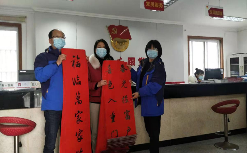 送春聯(lián)第二站,我們來(lái)到了駐地公司所在社區(qū)東湖路社區(qū),社區(qū)方主任高興地說(shuō)“你們每年都這么有心,而且送的時(shí)間也早,每年這個(gè)時(shí)候來(lái)社區(qū)辦事的人最多,剛好隨便帶一副手寫對(duì)聯(lián),我們社區(qū)都不需要宣傳,就很快分發(fā)完了。替他們感謝供水公司,更代表社區(qū)感謝供水公司,每年為我們社區(qū)共建獻(xiàn)計(jì)獻(xiàn)策、親力親為!