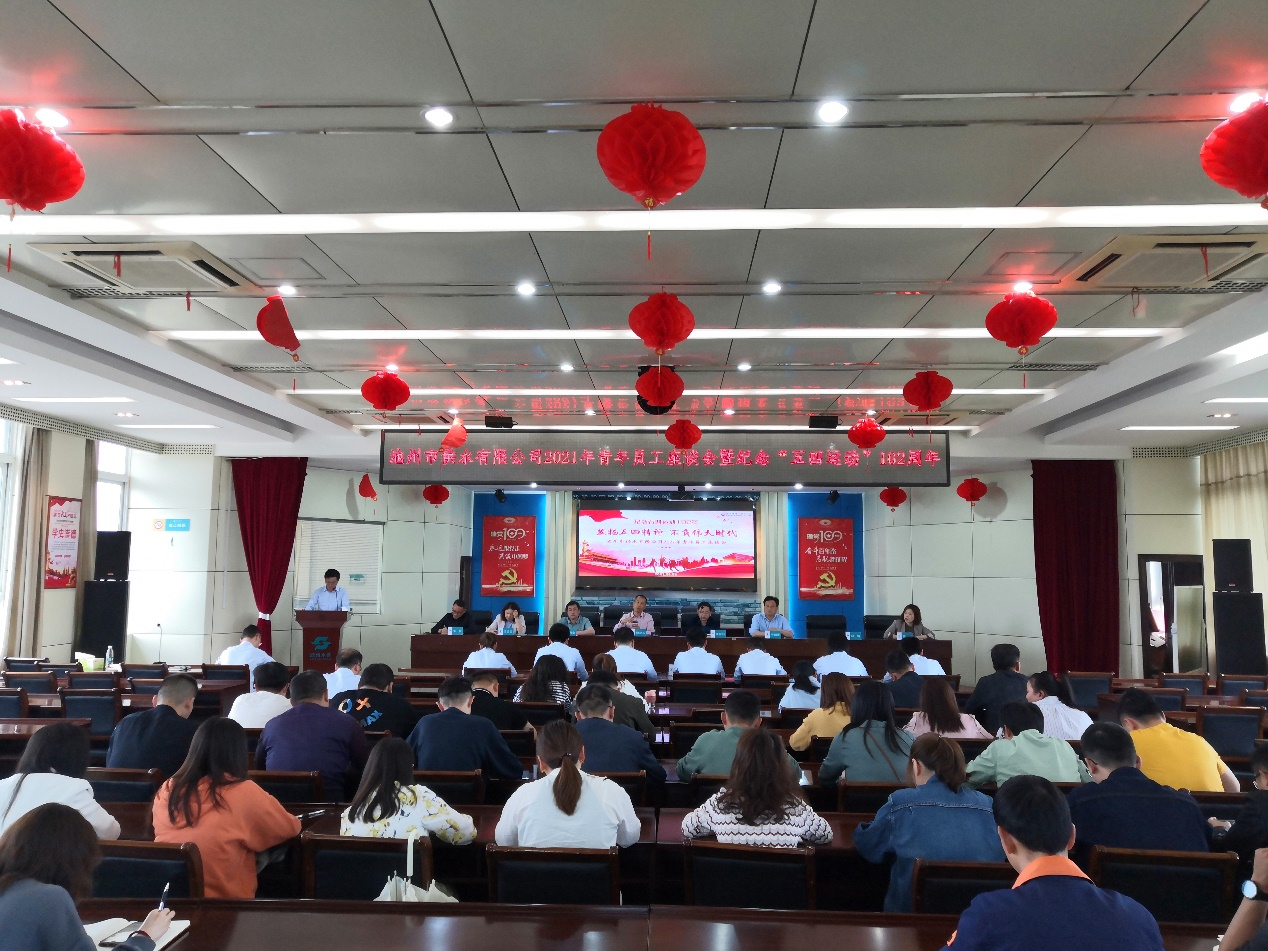 新時(shí)代需要勇于擔(dān)當(dāng)?shù)男虑嗄,為加?qiáng)青年員工隊(duì)伍建設(shè),引導(dǎo)廣大青年員工勤學(xué)、修德、明辨、篤實(shí)、愛(ài)國(guó)、勵(lì)志、求真、力行,做合格接班人,5月6日下午,池州供水有限公司組織召開(kāi)了以“發(fā)揚(yáng)五四精神,不負(fù)偉大時(shí)代”為主題的青年員工座談會(huì)。董事長(zhǎng)楊觀樂(lè),總經(jīng)理李張兵等全體高管出席本次座談會(huì),各部門(mén)負(fù)責(zé)人、青年員工代表、全體團(tuán)員共60余人參加座談。