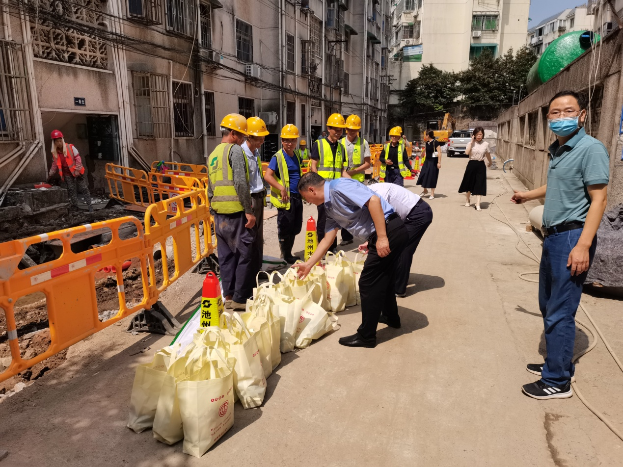 在東湖路花園小區(qū)老舊小區(qū)改造工程施工現(xiàn)場(chǎng),慰問(wèn)團(tuán)一行給大家送上防暑降溫慰問(wèn)品,感謝施工作業(yè)人員在高溫下堅(jiān)守工程一線,為池州市老舊小區(qū)改造工程辛苦勞作,揮灑勤勞的汗水。