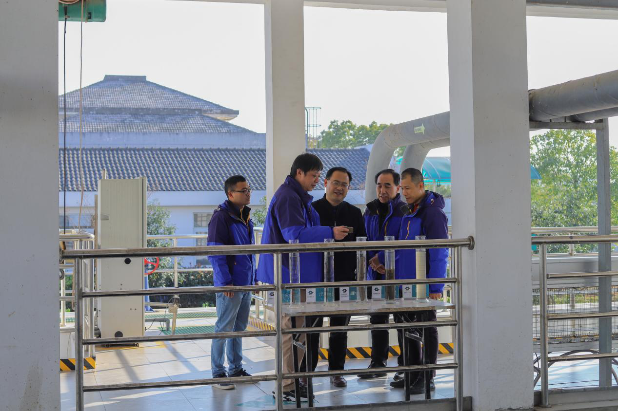 汪偉一行在排水公司看了《水寶寶一日游》系列宣傳片,緊接著來到污水處理現(xiàn)場詳細(xì)了解污水運(yùn)行和水質(zhì)達(dá)標(biāo)排放等情況,汪偉對廠區(qū)運(yùn)營管理和環(huán)境給予了肯定。