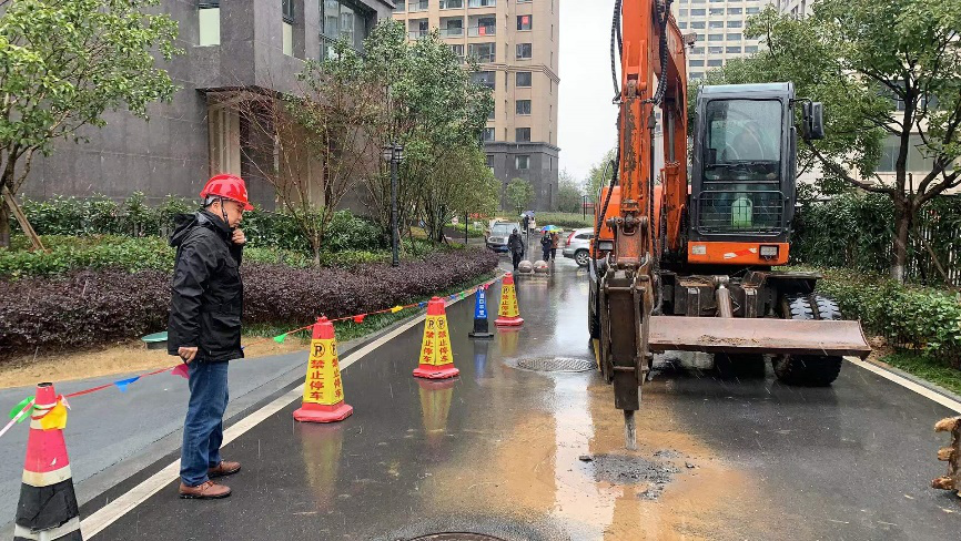 為解居民用水之憂,搶修班組顧不上吃飯,一直在現(xiàn)場進(jìn)行準(zhǔn)備工作。“今天氣溫比較低,加上小區(qū)內(nèi)部管線錯(cuò)綜復(fù)雜,給機(jī)械作業(yè)、破土作業(yè)等造成了難度,也給搶修工作帶來了一定困難。我們現(xiàn)在準(zhǔn)備工作做得越充足,后續(xù)搶修就越快,就能以最快速度恢復(fù)居民正常用水!睋屝揸(duì)隊(duì)長王軍解釋道。