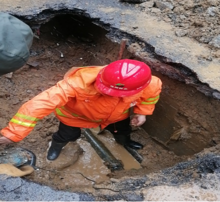 當(dāng)天10時(shí),供水客服熱線接到電話,獲悉清溪?jiǎng)P旋門小區(qū)地面有大面積積水,疑似自來水管線爆裂。搶修單派發(fā)后,管網(wǎng)部搶修班組立即行動(dòng),副部長尤勇勝親自帶隊(duì),第一時(shí)間趕赴現(xiàn)場,憑借多年的探漏搶修經(jīng)驗(yàn),尤勇勝和搶修隊(duì)員僅通過四個(gè)聽漏點(diǎn)便精準(zhǔn)確定滲漏位置。由于漏水量尚在可控范圍內(nèi),且即將迎來用水高峰期,為不影響居民正常用水,搶修組結(jié)合現(xiàn)場情況,決定延后搶修時(shí)間,并制定了先部署、避高峰、短停水、急施工的搶修方案,確保后續(xù)施工安全進(jìn)行。