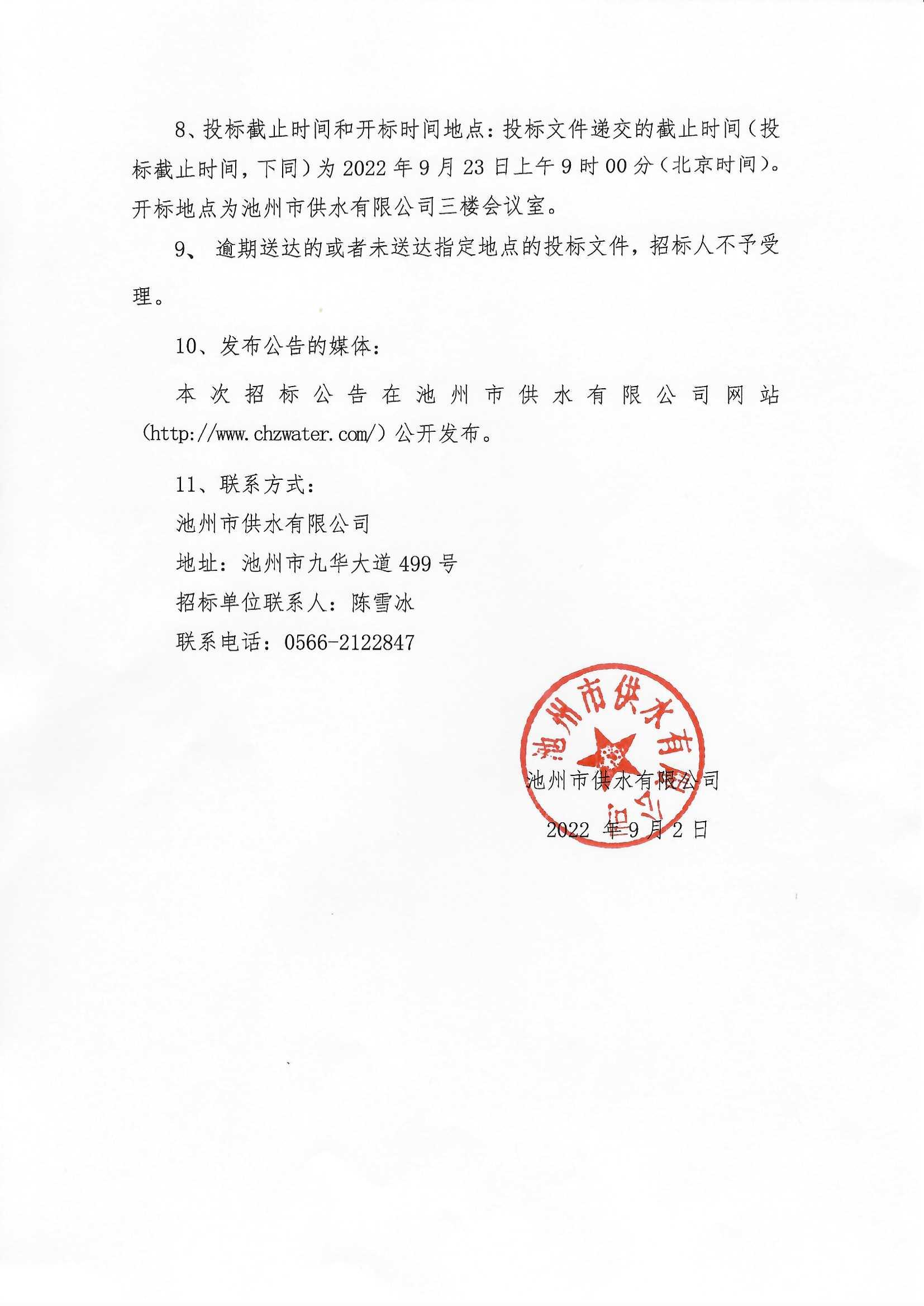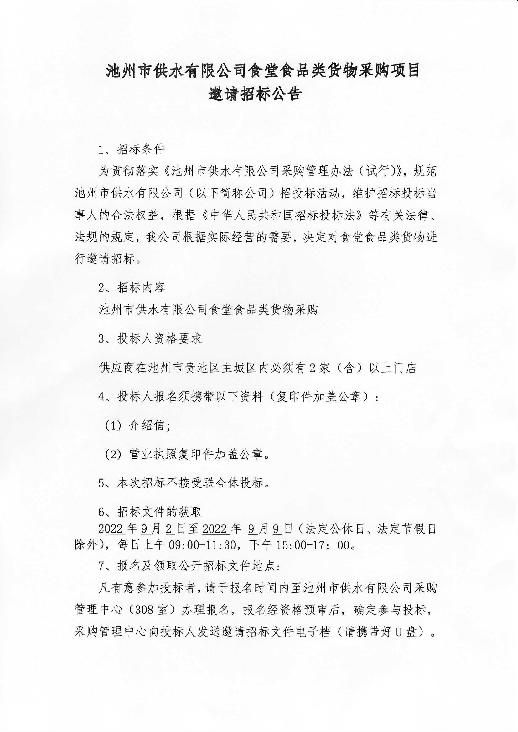 | 池州供水公司食堂食品類貨物采購項(xiàng)目邀請(qǐng)招標(biāo)公告 | |