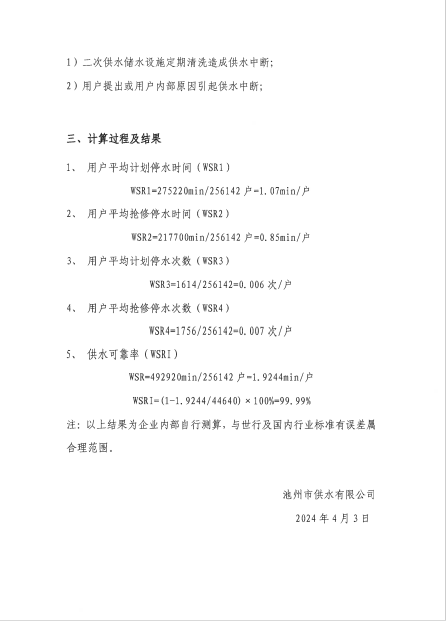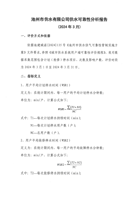 | 池州市供水有限公司供水可靠性分析報告 | |