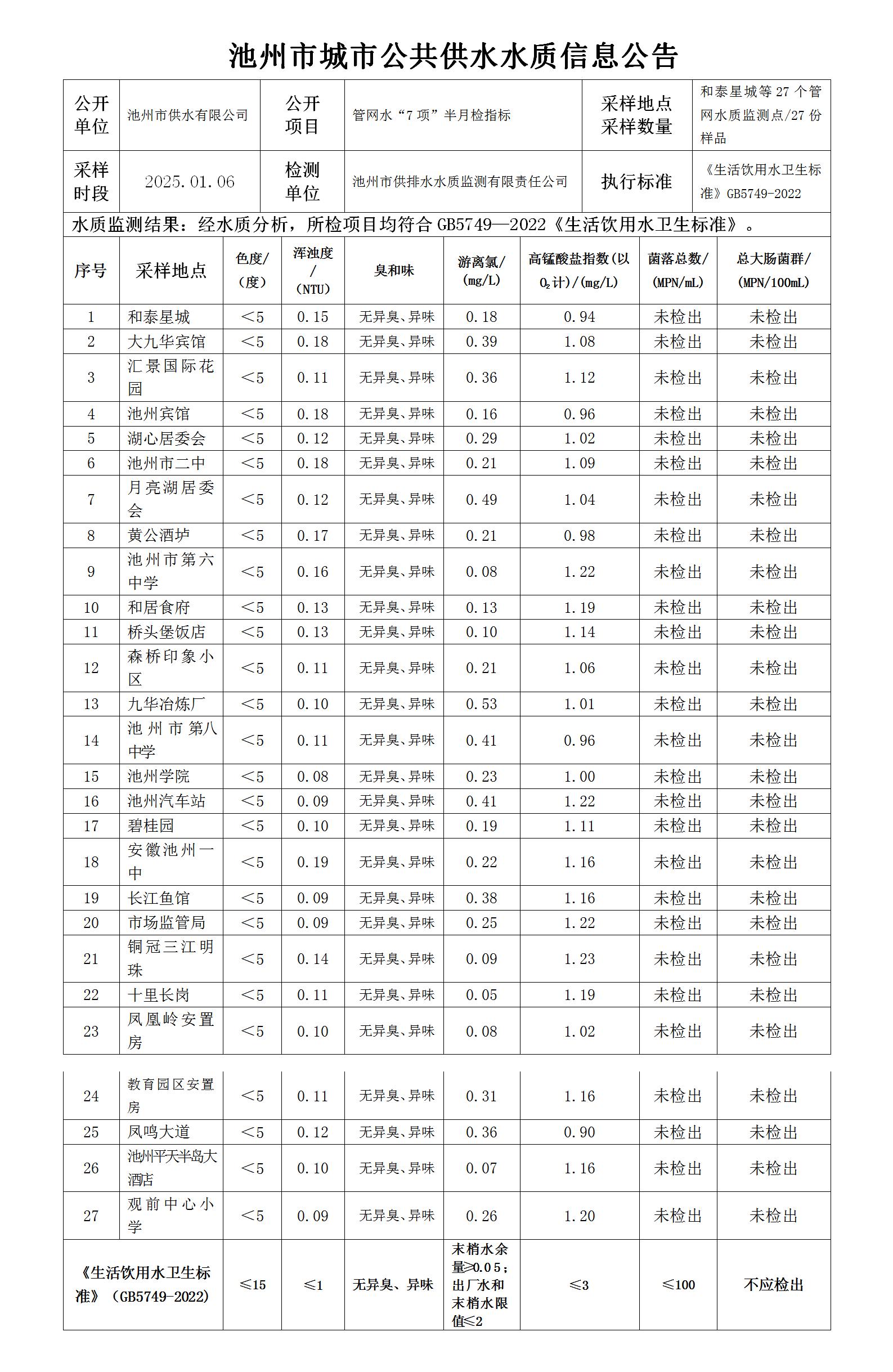 | 池州市城市公共供水水質(zhì)信息公告管網(wǎng)水“7項”半月檢指標1-1 | |