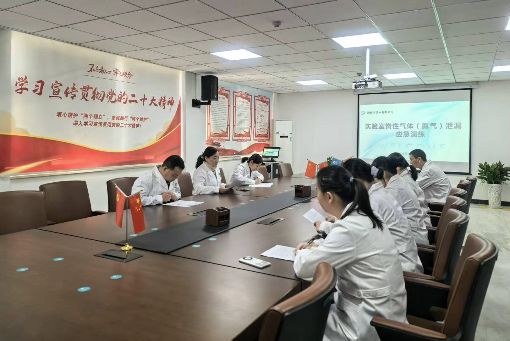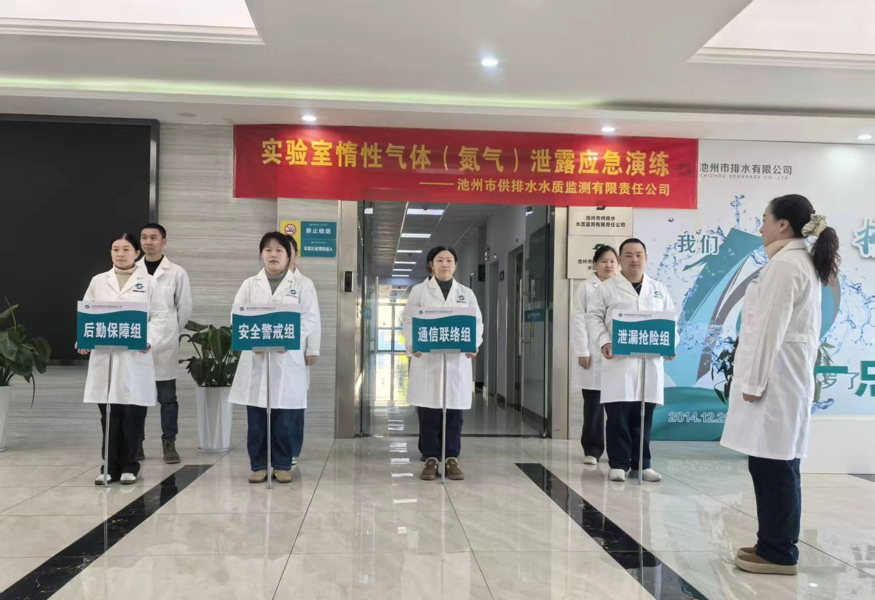 2025年11月20日上午,公司在實驗室區(qū)域組織開展了實驗室惰性氣體(氮氣)泄漏應(yīng)急演練,旨在全面提升公司應(yīng)對突發(fā)氣體泄漏事件的應(yīng)急處置能力,增強全體水質(zhì)檢測人員的安全防范意識。本次演練以“安全第一、貼近實戰(zhàn)、統(tǒng)一指揮、重點突出”為原則,模擬實驗室氣瓶間氮氣瓶閥門接口處生料帶老化導(dǎo)致泄漏的緊急場景,全面檢驗《池州市供排水水質(zhì)監(jiān)測有限責任公司實驗室惰性氣體泄漏應(yīng)急預(yù)案》應(yīng)急響應(yīng)機制的可行性與有效性,確保在真實事件中能做到迅速、有序、高效響應(yīng),保障生命財產(chǎn)安全。