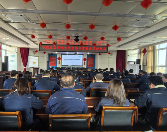 2025年11月13日,池州市供水有限公司黨支部書記以《中國正在用強大思想偉力重塑世界新格局》為題講授專題黨課。池州項目公司全體黨員、入黨積極分子近百人參加黨課。