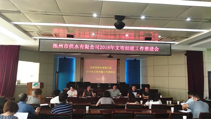 2018年8月1日下午,池州市供水有限公司在公司四樓會議室召開文明創(chuàng)建工作推進(jìn)會,公司領(lǐng)導(dǎo)班子成員、各部門負(fù)責(zé)人參加會議。會議由副總經(jīng)理王忠榮主持。