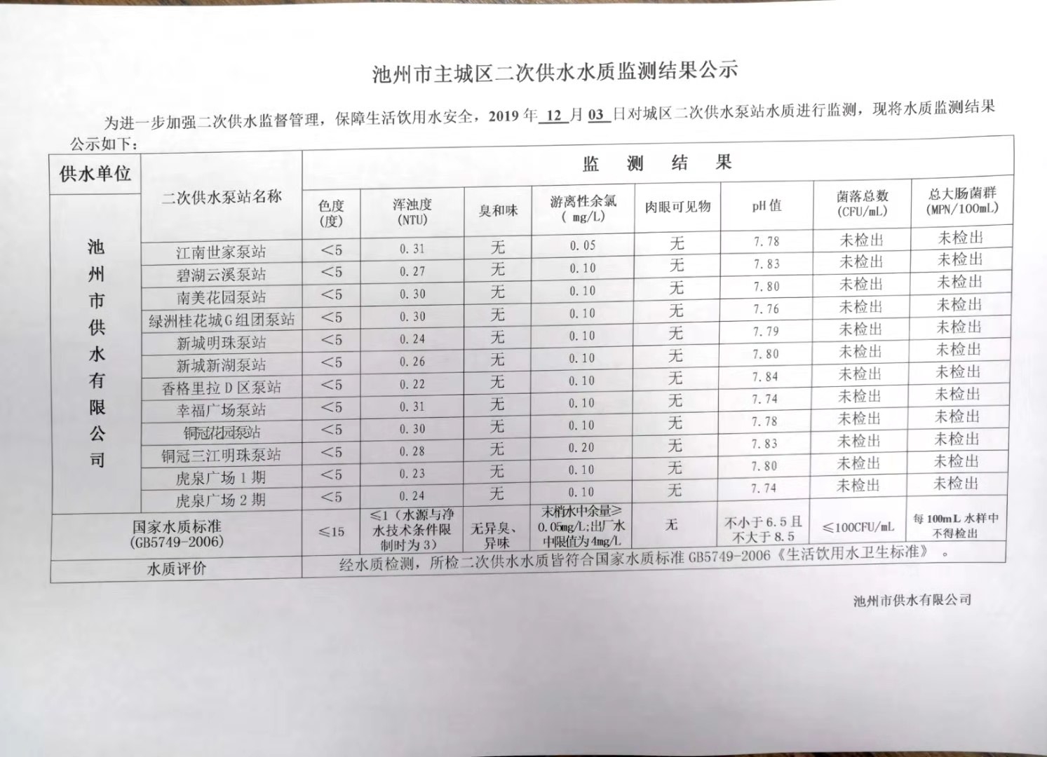 | 池州市主城區(qū)二次供水水質監(jiān)測結果公示(2019.12.03) | |