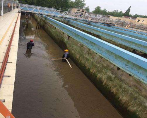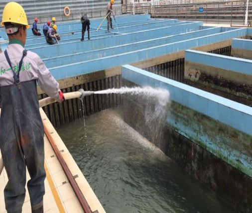 23日早晨,清洗人員全部準(zhǔn)備就緒,在做好安全防護(hù)措施后,先是將平流池鋼槽及不銹鋼折板絮凝池池壁進(jìn)行清洗,隨后排空平流池,在確定水位足夠時(shí),清洗人員穿好雨衣雨褲,用爬梯下到池底,將連接好的龍帶進(jìn)行高壓噴射清洗。公司分管領(lǐng)導(dǎo)和水廠負(fù)責(zé)人全程現(xiàn)場指導(dǎo)清洗,提醒清洗人員注意安全。經(jīng)過8個(gè)小時(shí)多的奮戰(zhàn),池底的淤泥終于在下午5:00清洗干凈,清洗人員安全有序的從池底撤出來,收拾好沖洗工具,擺放整齊,順利完成了本次平流池的清洗工作。