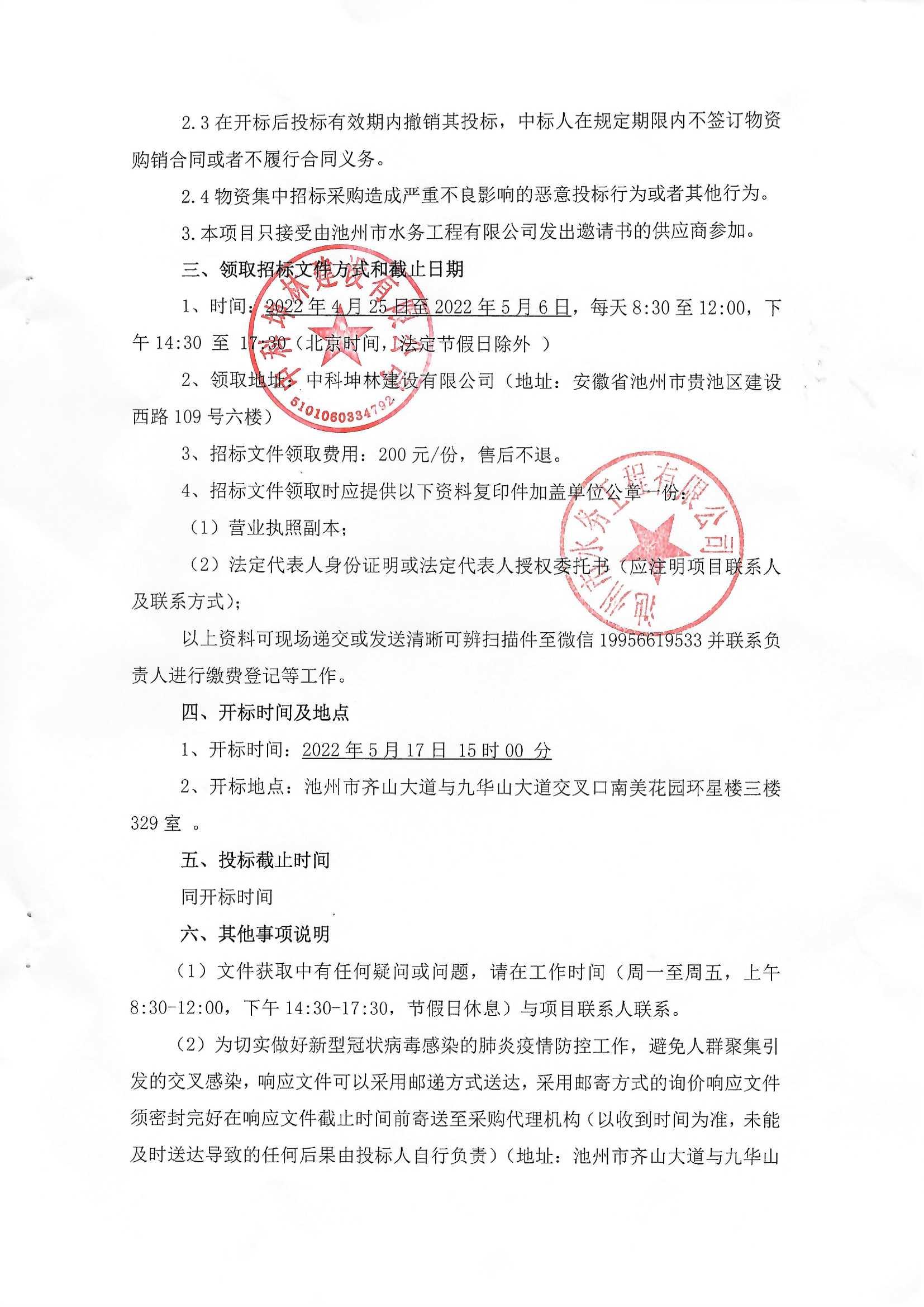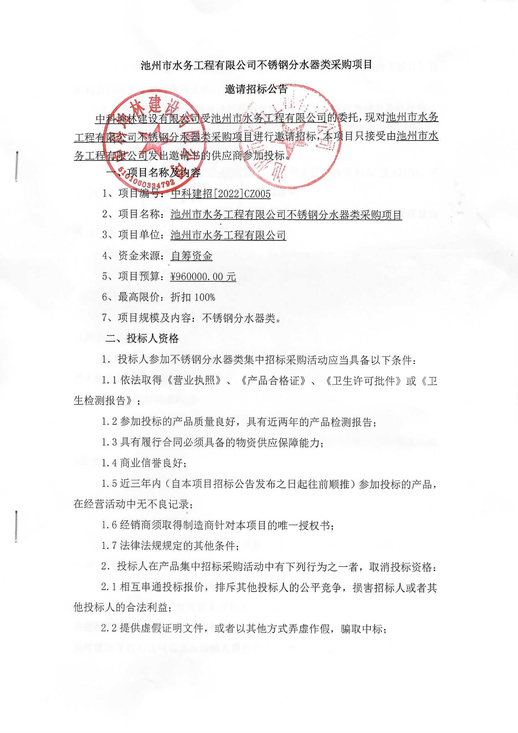 | 池州市水務(wù)工程有限公司不銹鋼分水器類采購項目邀請招標(biāo)公告 | |