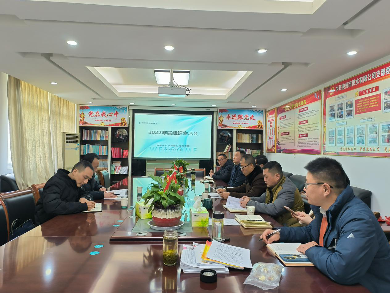 2月26日下午,池州市供水有限公司黨支部召開2022年度組織生活會。市建投集團黨委書記蔣海曙到會指導。