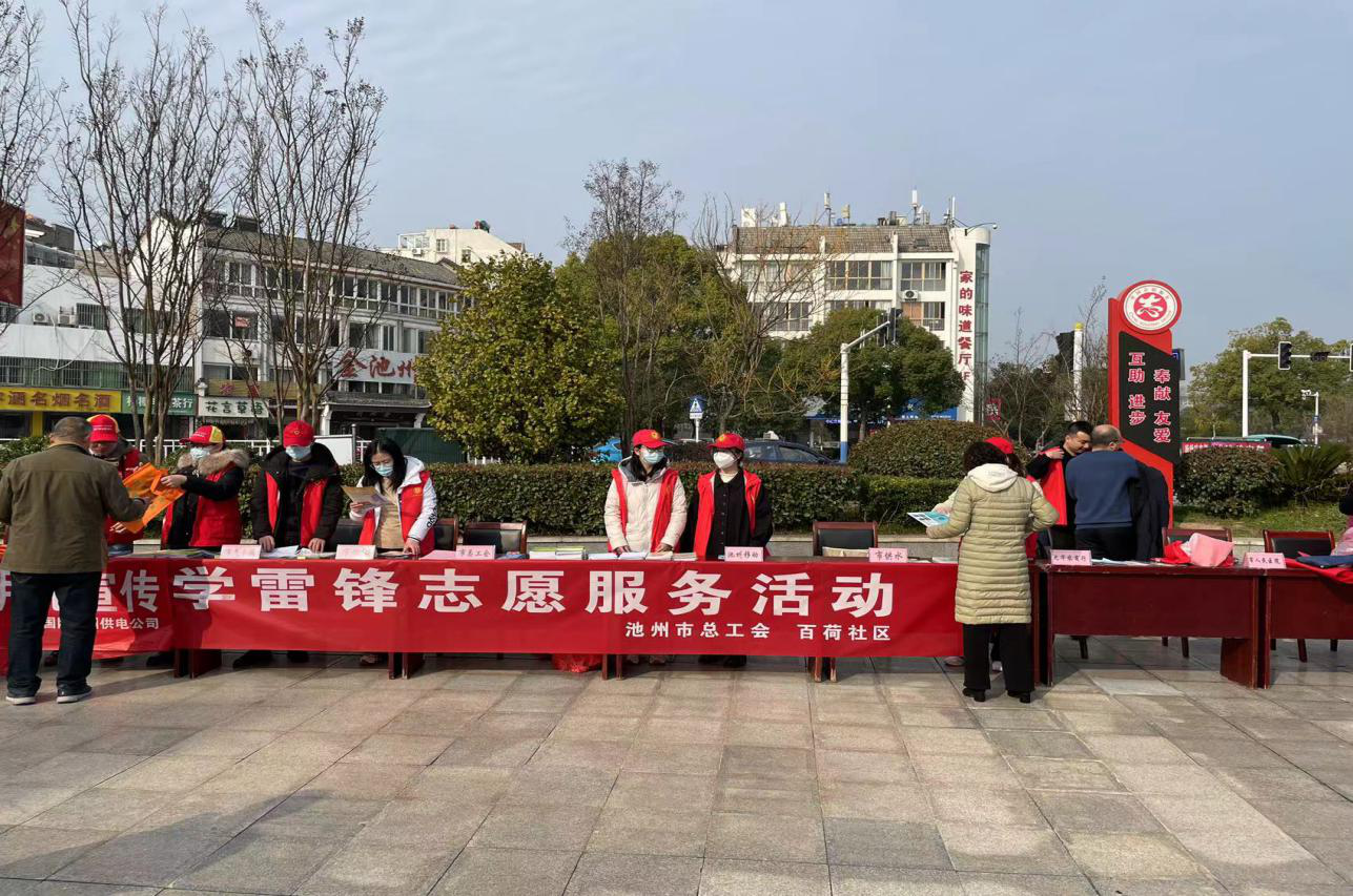 三月春風(fēng)暖人心,雷鋒精神代代傳。2023年3月5日是第60個學(xué)雷鋒日,為了踐行雷鋒精神和進(jìn)一步弘揚(yáng)“奉獻(xiàn)、友愛、互助、進(jìn)步”的志愿精神,由池州總工會牽頭,池州供水公司參與,在市區(qū)組織開展學(xué)雷鋒志愿服務(wù)宣傳活動,推進(jìn)社區(qū)志愿活動深入開展,為創(chuàng)建文明城市營造良好的社會氛圍。
