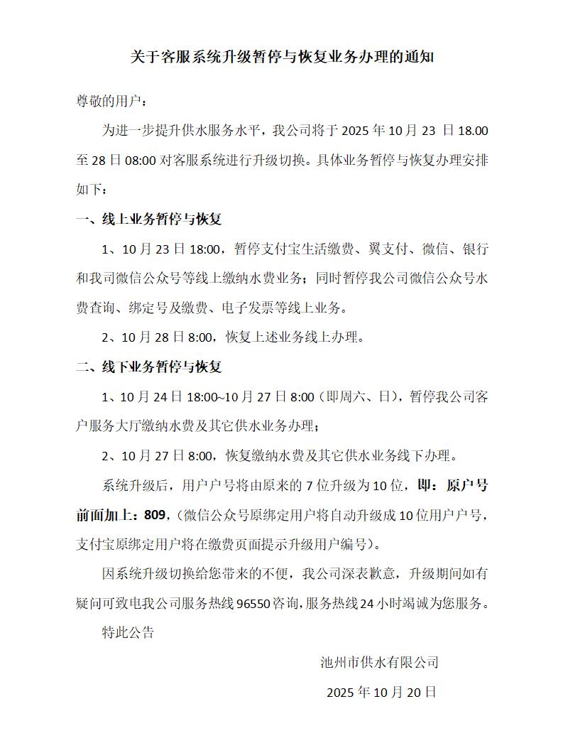| 關于客服系統升級暫停與恢復業(yè)務辦理的通知 | |