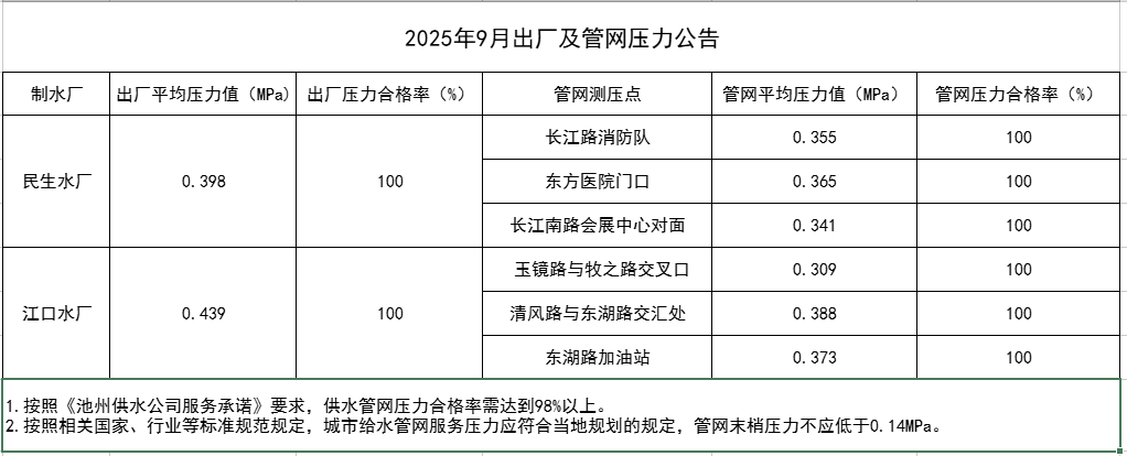 | 2025年9月出廠及管網(wǎng)壓力公告 | |
